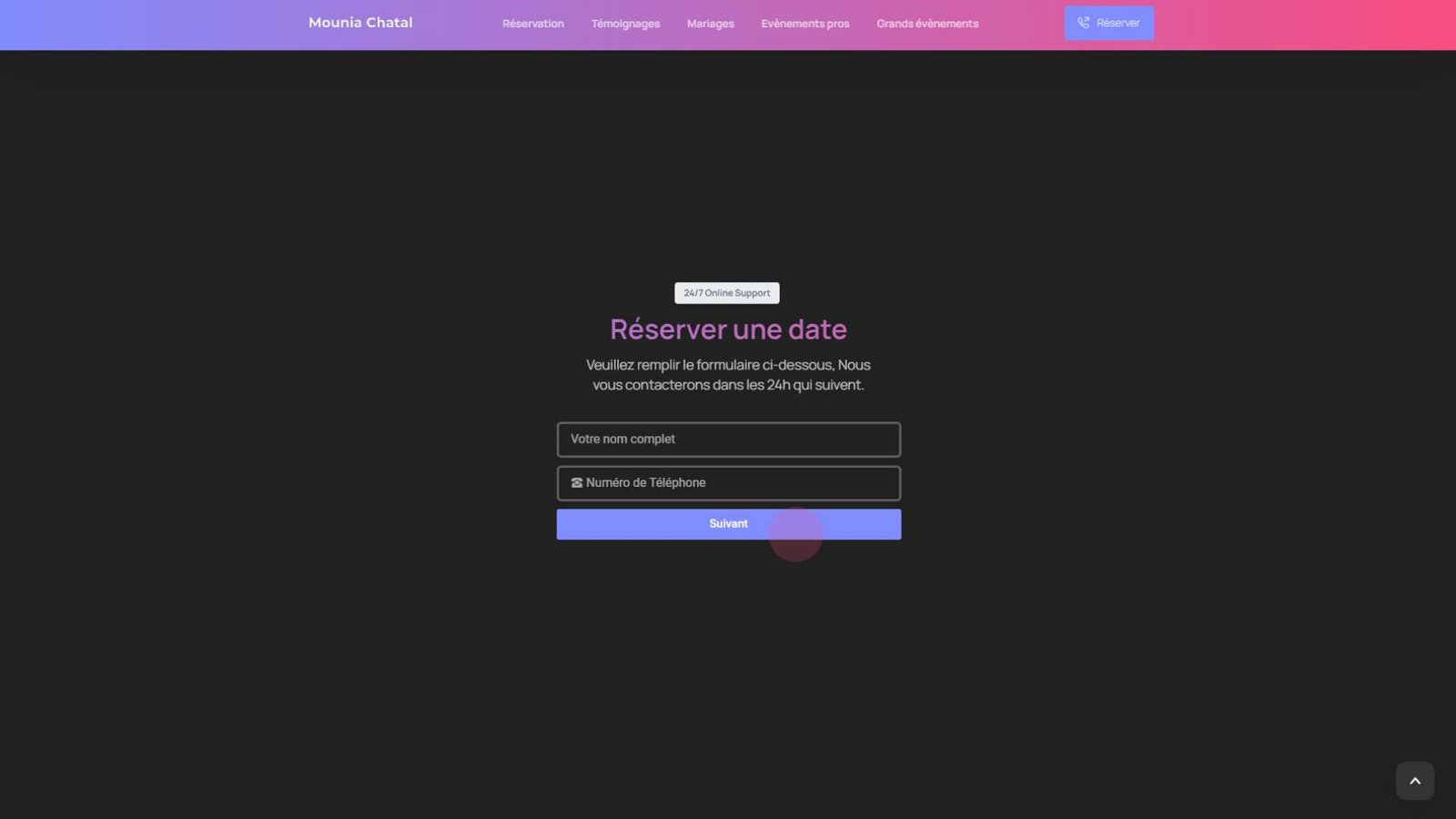 • Formulaire de réservation en ligne pour faciliter les demandes de prestation.